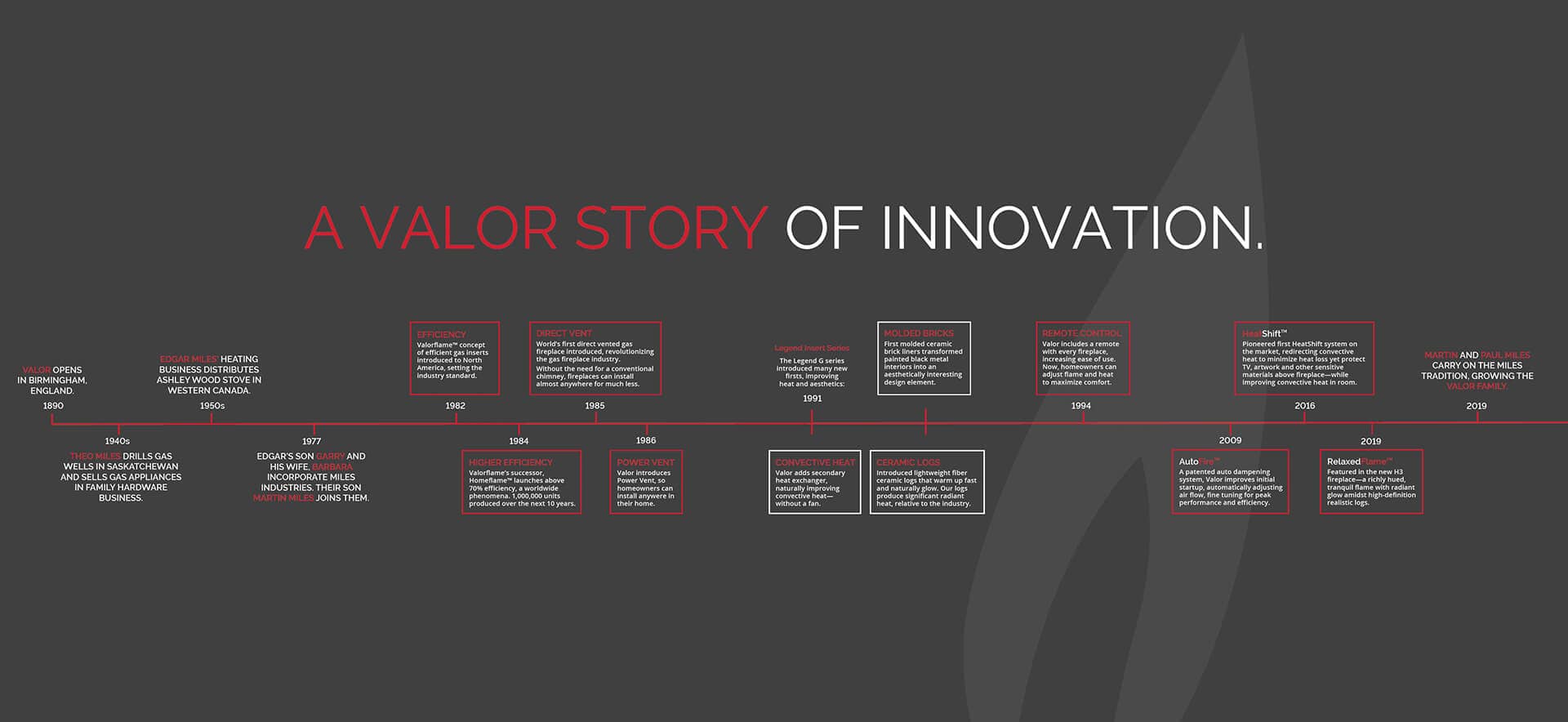 Miles Industries obtained the exclusive Canadian distributorship for Valor products in 1984, and the first Canadian Gas Association (CGA) Certified products arrived for sale on a national basis. At this time, Paul Miles moved to Ontario to develop the rest of the Canadian market working with Garry's friend and an associate from their days in the industrial HVAC business, Jack Williams. In 1984 Jack founded Valtech Heating Ltd. in Toronto specifically to distribute Valor fireplaces. Jack and Paul worked with the three major Ontario gas utilities within the first 12 months and quickly opened a network of independent dealers. In 1986, Valor designed and sold the first-ever direct vent room sealed fireplace, and it became an instant success in Canada. That same year, Miles Industries pioneered the first "power vented" gas fireplace allowing fireplace installations almost anywhere in the home.